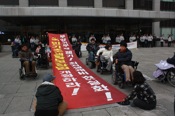 기자회견 도중 37명의 민원신청서를 청와대에 접수하고자 인권단체 활동가와 장애인 대표가 청와대로 향했으나, 결국 경찰들이 앞을 가로막아 민원신청서를 전달하지 못한 것으로 알려졌다.