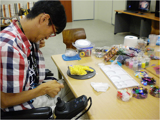 | 디딤돌장애인야학에 나와 미술활동을 하는 용일씨. 그의 꿈은 하루 빨리 체험 홈에서 나와 독립하는 것이다. 그러기 위해서는 아직 세상을 더 많이 배우고 싶다. | ||