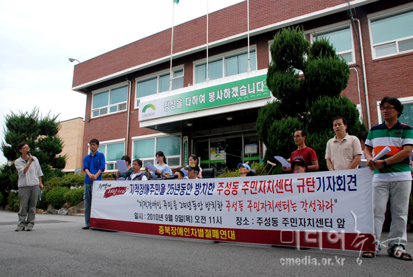지적장애 주민 방치한 주성동 주민자치센터 규탄 기자회견