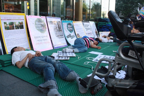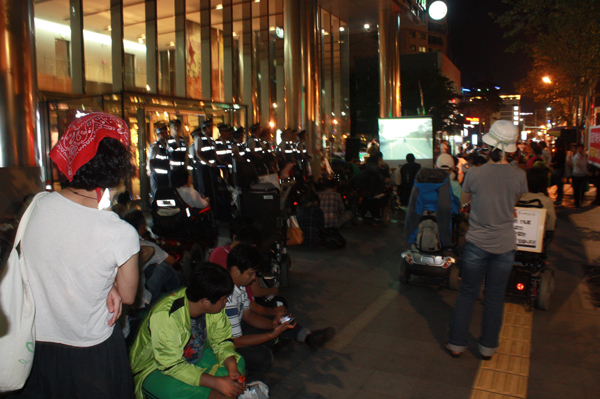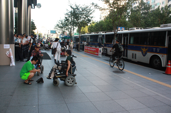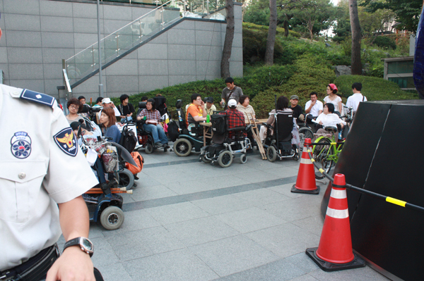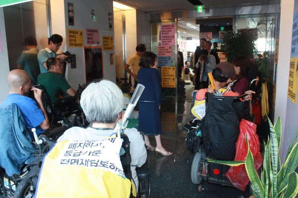 이에 대해 활동가들은 “장애인들의 요구는 받아들이지 않으며, 강제로 퇴거 명령을 내리는 것은 장애인을 무시하는 처사.”라며 “우리의 요구가 관철될 때까지 절대로 나가지 않겠다.”고 말했다.