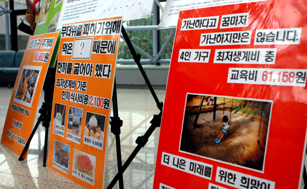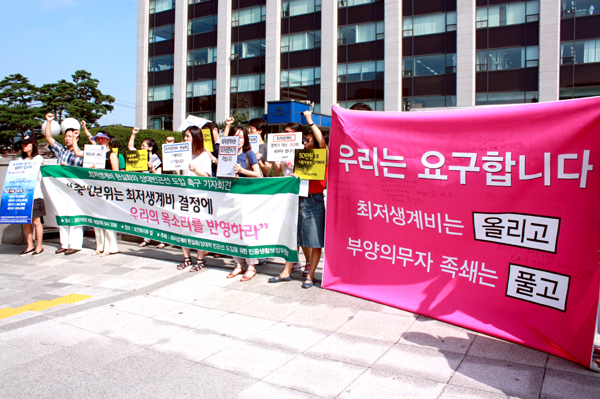 정부는 우리의 삶을 결정하는 최저생계비를 우리의 의견을 전혀 배제한 채 전문가가 자의적으로 결정하고 있다. 주거비 8만 7천원으로 전국 어디에서 월셋방을 구할 수 있단 말인가? 4인 가족이 한달에 2만 4천원으로 두 번씩이나 외식할 수 있다는 계산은 도대체 어떻게 가능한가? 속옷 두 벌로 2년을 버틴다는 것을 자기 문제로 상상해보았는가?