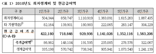 8월25일 보건복지부가 <2011년 최저생계비 5.6%인상>이라는 제목 하에 보도자료를 배포했다. 해당 문서 오른편 상단에 적힌 “생활공감, 국민행복”이란 글자가 눈에 들어오면서 나도 모르게 썩소를 자아내게 된다.