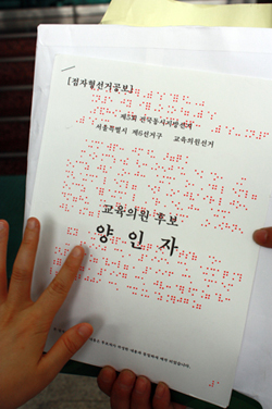 장애우권익문제연구소 임수철 정책팀장은 “공직선거법 제65조 4항의 내용을 “점자형 선거공보 1종을 작성할 수 있다. 이 경우 책자형 선거공보의 면수 이내에서 작성하여야 한다.”로 개정함으로써, 장애인의 알 권리를 침해하는 결과를 가져왔다. 또한 지방선거 후 16개 시도지사 후보 55명의 책자형 공보물과 점자형 공보물을 비교 분석해본 결과 점자형 공보물로 완벽한 정보제공을 한 후보는 단 3명에 불과했으며, 당선자 중에는 한 명도 없었다.”고 지적하며 “ 앞으로 장애인 당사의 노력도 중요하지만 관련기관에서 장애인 참정권을 보장하려는 의지가 있어야 한다”고 강조했다.