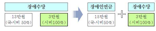 이에 따라 지난 6월까지 기초생활수급권자 중 장애수당을 받아온 중증장애인은 추가 장애수당 3만원을 계속 받을 수 있으며, 7월 이후에 기초생활수급자로 책정된 경우 장애인연금 신청일이 포함된 달부터 받게 된다.