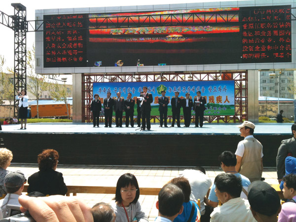 | ▲ 연길시 옆 훈춘시에서 중국 정부가 정한 ‘장애인 돕기의 날’ 행사가 시장 등이 참석한 가운데 시내 중앙광장에서 열리고 있다. ⓒ김라현 기자 | ||