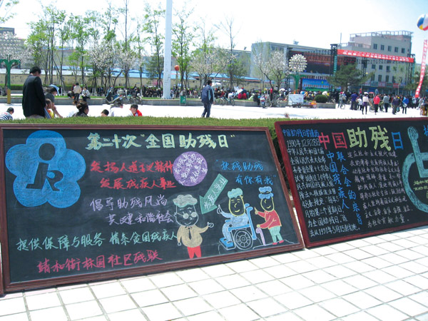 | ▲ 광장에 전시된 중국 장애인의 날 안내문 ⓒ김라현 기자 | ||