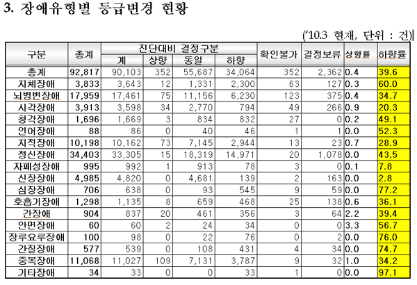 장애등급 심사 결과 ‘36.3% 하향 조정’