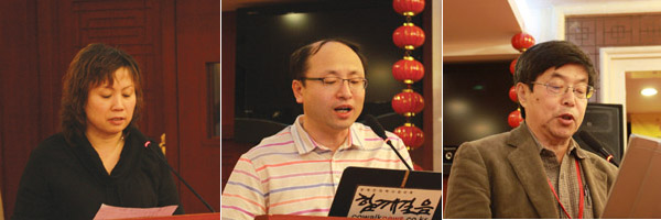 | ▲ 공동선언문 발표자들. 왼쪽부터 중국 연변지체장애인협회 이춘자 회장, 한국 장애우권익문제연구소 신용호 소장, 일본 장애인차별과 싸우는 전국공동조합 사이토 겐조 국장 ⓒ김라현 기자 | ||