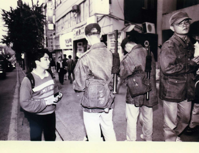 | 인권영화제가 진행되는 홍익대학교 주변에서 불심검문을 하는 경찰들 | ||