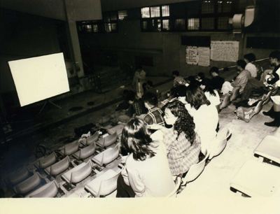 | 홍익대학교 야외에서 영화를 상영하고 있다. | ||