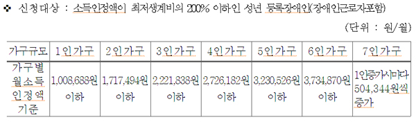 신청기간은 5월부터 장애인자립자금 재원 소진 시까지 거주지 동 주민자치센터에서 수시로 신청 받으며, 소득 및 재산조사, 자립 전망과 원리금 상환 가능성 등을 고려해 해당 자치구의 심사를 거쳐 국민은행을 통해 지원한다.