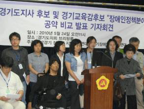유경미 경기장애인부모연대 공동대표는 기자회견에서 “경기도 차원의 장애인연대를 처음 구성해 부족하나마 장애인 정책 별화 발전의 시작을 알리는 계기가 됐다고 자평한다.”며 “하지만 도지사, 교육감 후보 초청 토론회가 후보자들의 무관심 등으로 인해 무산된 것은 아쉬움으로 남으며, 도내 47만 장애인당사자와 장애인 가족은 각 후보들이 발표한 정책 공약 내용을 꼼꼼히 검토해 장애인 정책을 실현해 줄 수 있는 후보를 뽑아야 한다.”고 말했다.