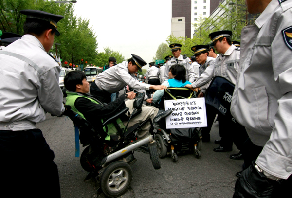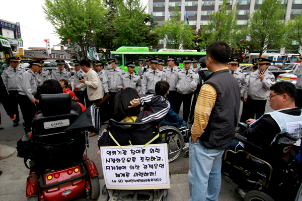 1년 중 가장 치열한 ‘전투’가 벌어지는 420 투쟁에서도 볼 수 없었던, 목숨을 건 기습 도로점거와 점거농성이 뉴스메이커가 되기 위한 장애인들의 ‘반짝 이벤트’로 보이지 않는 것은 후퇴하다 못해 벼랑 끝까지 밀린 이들의 마지막 몸부림인 듯 보여 더욱 처절하고, 처연하다.