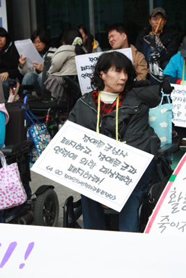 이 장애인은 이어 ‘부모님도 나이가 들어 나를 돌봐주지 못하는데, 활동보조인 도움을 받을 수 없기 때문에 이제 모임에도 못 나가고, 학교에도 못가고, 아예 사회생활을 못하게 되었다.’면서 ‘나 보고 어떻게 살란 말이냐.’며 대책을 호소했다.