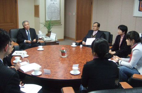 | ▲ 장애인차별금지추진연대 소속 활동가들이 국가인권위원회 현병철 위원장을 비롯한 관계자들과 면담을 하고 있다. (사진제공=장추련) | ||