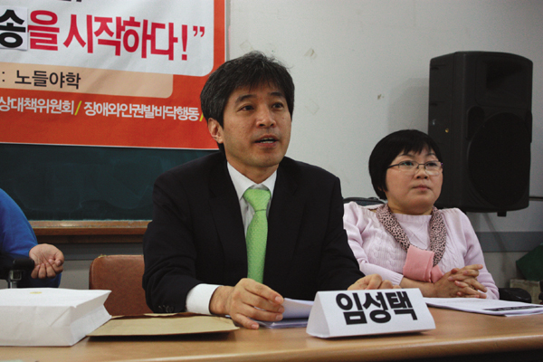 사회복지서비스 변경신청의 법적 진행을 총괄하고 있는 탈시설정책위 임성택 변호사(법무법인 지평지성) ⓒ김라현 기자