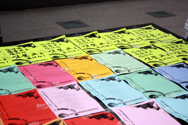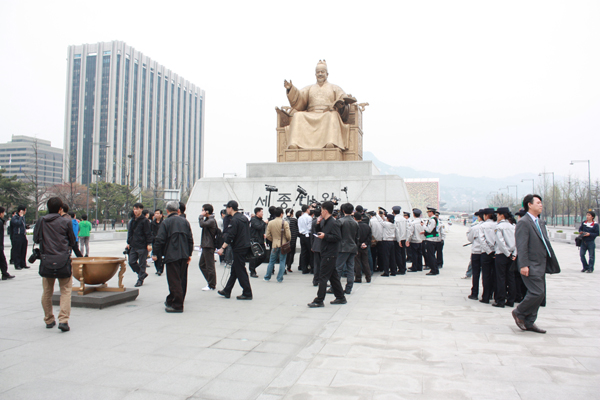 미리 정보를 입수하고 광장에 나온 종로경찰서와 서울시관계자들, 안전요원 사이로 가까스로 북을 들고 동상 앞에 도착한 몇몇 활동가들이 행사 진행을 준비했지만, 경찰관계자들은 '불법집회'라며 행사 진행을 막았다.