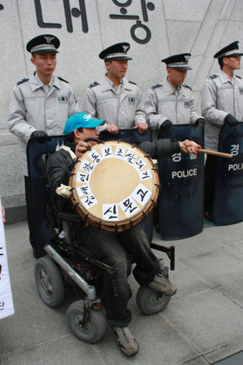현재 420공투단은 경찰과의 대치를 끝내고 오후 2시 국가인권위원회 앞에서 열릴 전국장애인차별철폐투쟁결의대회에 참석하기 위해 이동했다.