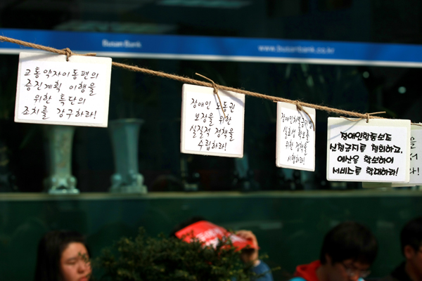 최석윤 서울지부장은 “이명박 대통령이 쓸데없이 어설픈 장애체험 한다고 하는데 꽁꽁 묶어놓고 활동보조없이 뭘 할 수 있는지 해보라고 말하고 싶다. 장애인들이 어떤 어려움에 처해있는지 가슴으로 알게 해 장애로 인해 차별받는 어떤 사람도 없도록 하고 장애인이 편리한 세상이 모두가 편리한 세상이라는 슬로건을 세울 수 있길 바란다.”고 당부했다.