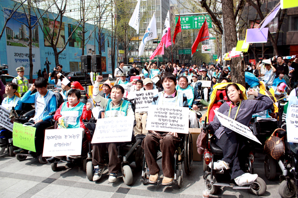 420장애인차별철폐공동투쟁단은 20일 오후 2시 서울 중구 국가인원위원회 앞에서 전국장애인차별철폐투쟁결의대회를 열고 2010년 420 공동투쟁단 9대 요구안을 발표했다.