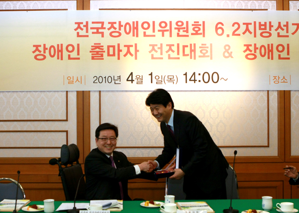 이 자리에서 정세균 대표는 “장애인 정책을 변화시키기 위해서는 장애인이 직접 시의원이든 도의원이든 진출해야 한다.”고 강조한 뒤 “민주당은 이번 선거를 위해 장애인참정권 확대 및 정치진출 활성화를 위한 새로운 비전을 제시하겠다.”고 밝혔으며, 이미경 사무총장은 “이번 지방선거에는 장애인 후보자를 15% 범위 내에서 전략공천할 수 있도록 했고, 후보자 심사과정에서 15% 가산점을 주도록 당헌 당규를 개정하는 등 장애인 후보자를 위한 첫발을 내디뎠다.”라고 평가한 뒤 “지금은 15% 가산점으로 출발하지만 한발자국씩 만들어 나가자.”고 말했다.