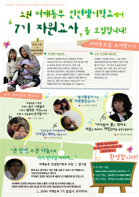 자원활동 참여를 원하는 이는 노원 어깨동무 인연맺기학교 홈페이지(http://club.cyworld.com/no--1)에서 신청하면 된다.