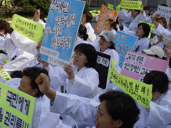 당시 특수학교가 아닌 일반학교 내 특수학급에 들어간 장애아들의 교육차별, 인권침해는 입이 떡 벌어질 수준이었다.