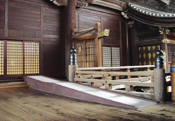 일본 사찰에 설치된 경사로. '문화재 훼손'이라는 이유로 장애인 편의시설에 인색한 한국의 사찰과 비교되는 모습이다. ⓒ조은영 기자
