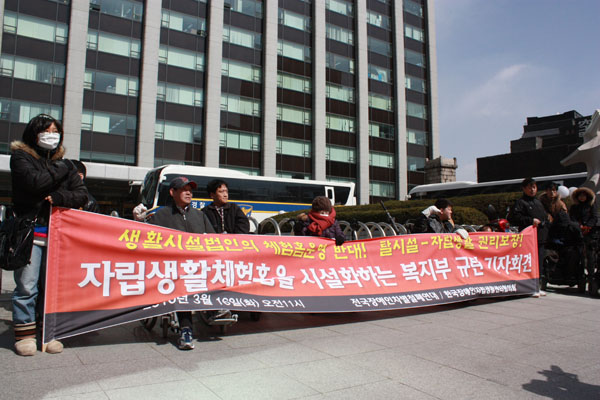 생활시설에서 나와 노숙 농성을 통해 현재 체험홈에서 거주하는 김동림 씨는 “체험홈의 운영을 시설에서 하게 하면 기존 시설과 똑같은 비리가 생길 텐데, 복지부는 왜 시설에 체험홈을 맡기려는 것이냐.”며 “장애인들은 모두 지역사회에서 비장애인들과 함께 살길 원한다.”고 주장했다.