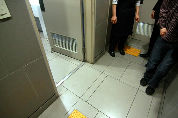 게다가 자동 미닫이문 대신 모두 여닫이문으로 되어 있어 장애인들이 이용하는 데 불편해 보였으며, 8층 레스토랑 내 화장실 문에는 손잡이가 아예 없어 함께 간 활동가마저도 당황스러운 모습이 역력했다.