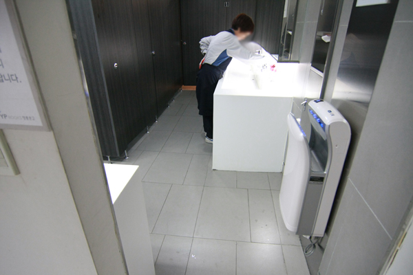 | ▲ 조사 중에 거의 모든 층에서 청소도우미들이 황급히 화장실을 청소하고 있었다. ⓒ김라현 기자 | ||