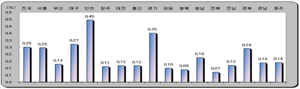 | ▲ 2010년 1월 시도별 지가변동률 (국토해양부) | ||