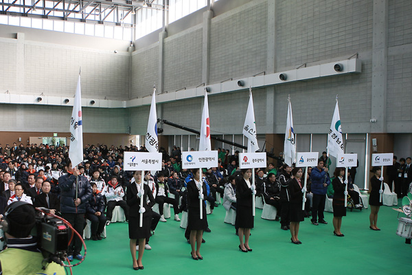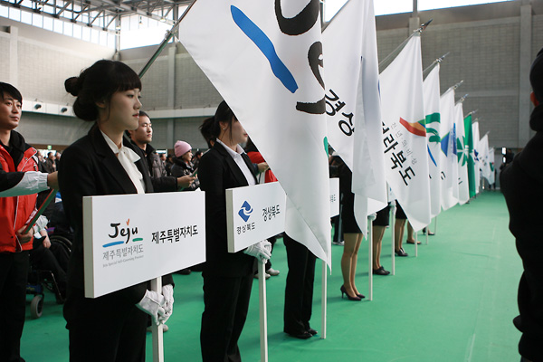| ▲ 개회식에 앞서 참가지역을 대표하는 피켓과 기수단이 입장한다. ⓒ이준호 객원사진기자 | ||