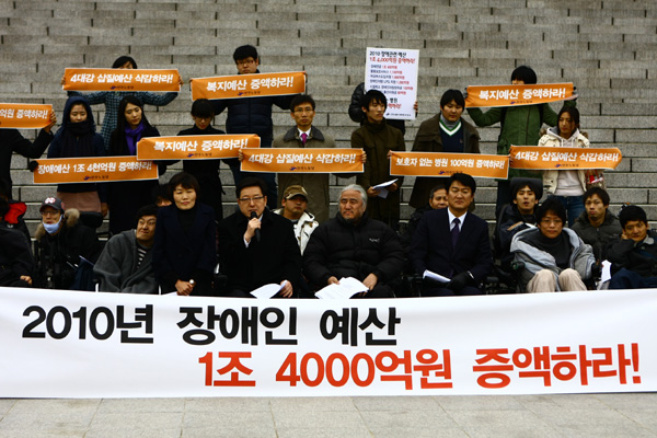 전국장애인차별철폐연대를 비롯한 19개 주요 장애인단체들은 <2010년장애인예산확보공동행동>을 결성하여 9월부터 ‘4대강예산 폐기, 장애인복지예산 확충’을 내걸고 집회, 인권위점거농성, 국회 앞 천막농성 등 장애인계의 요구를 알리는 투쟁들을 전개하였다. 국회 상임위에서 약간의 증액을 이루는 과정도 있었으나, 결국은 한나라당의 날치기 예산처리에 가장 큰 피해자가 되고 말았다.