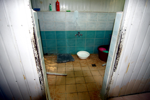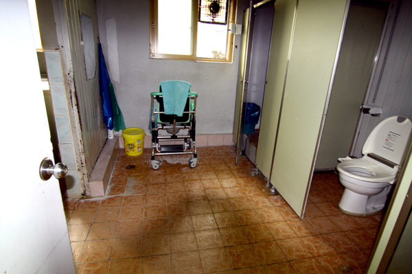 가운데 현관으로 이어지는 곳에는 남녀화장실이 있었으나 위생상태가 매우 불량했다. 특히 여자화장실 내에는 문고리가 떨어져 나가있는 채로 방치돼 있어 시설을 찾은 조사자들을 경악케 했으며, 제대로 된 샤워시설 하나 갖춰있지 않았다.