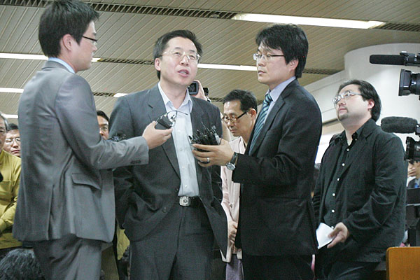 | 기자들에게 의견을 밝히는 김형태 변호사 | ||