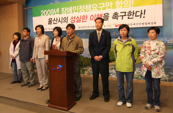 울산장차련은 2일 오전 10시30분 울산시 프레스센터에서 기자회견을 열어 2009년 장애인정책요구안의 최종 합의를 밝히고 울산시의 성실한 합의 이행을 촉구했다.
