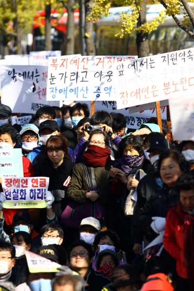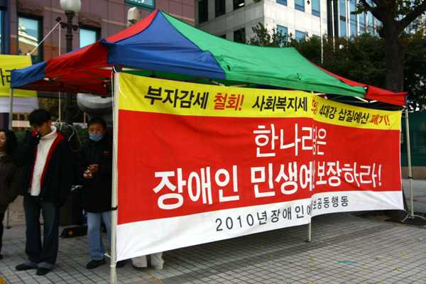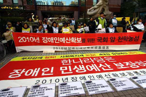 2일 오전 11시 2010장애인예산확보공동행동의 기자회견을 시작으로 오후 1시에는 전국 장애인 5천여명(주최 측 추산 1만1천 명)이 운집한 가운데 장애인연금확보 결의대회가 진행다. 또 오후 6시부터는 장애인예산확보공동행동 주최로 서울 여의도 이룸센터 앞에서 문화제가 진행 중이다.