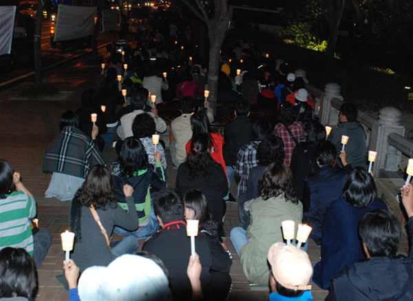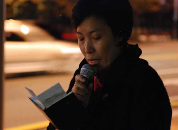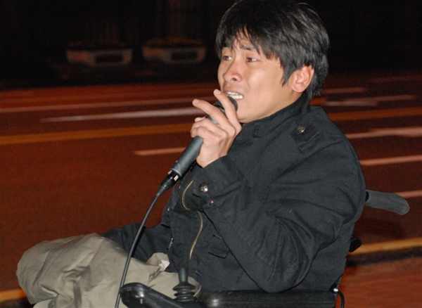 이날 촛불집회 때 장애인부모회 이정희 시인이 '사랑하는 아이야'라는 시를 낭독해 사람들의 가슴을 뭉클하게 했다.