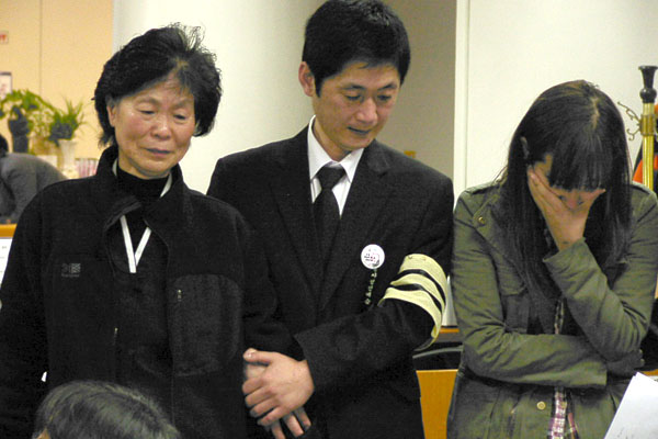 | 검찰이 8년을 구형하자 눈물을 흘리는 유족들 | ||