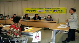 | ▲ 신문활용교육지도사 양성과정에 참여하고 있는 여성장애인 ⓒ여성부 | ||