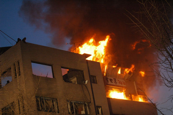 백동산 서장은 이날 낮에 용역 직원들이 건물2층에서 옥상으로 유독가스를 올려 보내기 위해 화재를 낸 사실도 나중에 알았다고 주장했다. 그는 ‘밝은 대낮에도 용역들이 불을 피웠는데 못 봤느냐?’는 질문에 “제가 알았다면 절대 용서하지 않았다. 당시 왜 불났는지는 몰랐다. 시위자가 낸 줄 알았다”고 말했다. ‘원인 파악을 할 의무가 있는 것 아니냐?’는 추궁엔 “철거민이 건물 3층까지 장악해서 경찰을 못 오게 하려는 줄 알았다”고 증언했다. 백동산 서장은 자신이 직접 이날 오후에 현장을 방문한 김석기 전 서울청장에 특공대 투입을 건의 했다고 증언했다.