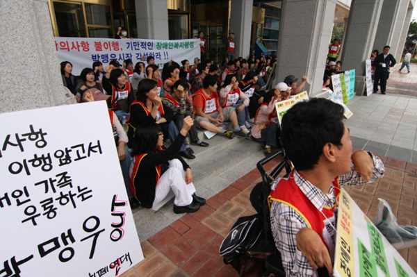 장차련은 "울산시가 올해 하반기에 실시하기로 합의했던 장애인실태 전수조사도 하지 않았고, 활동보조 이용 장애인에게 40~90시간 추가지원하기로 했던 합의 또한 지키지 않았다"고 지적하고 "더구나 지난 14일 복지여성국장과 협상하면서 21일 최종답변을 전달받기로 합의했는데도 '기다려달라'는 변명만 늘어놨다"면서 분노를 나타냈다.