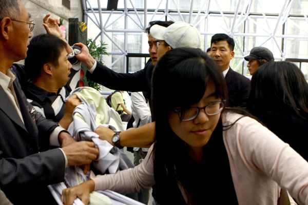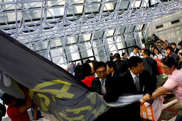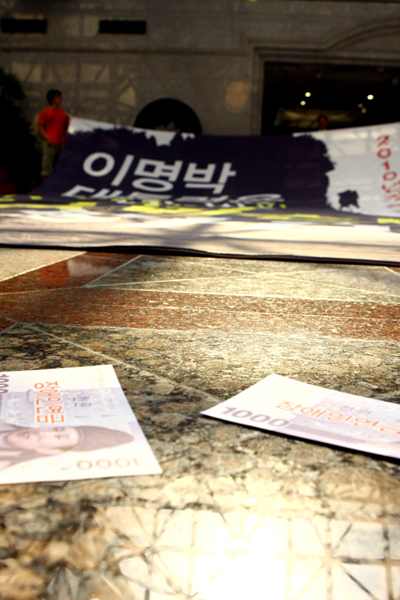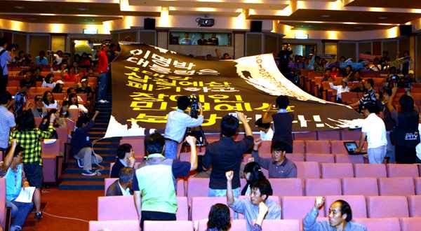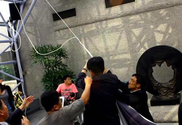이들은 약 1시간가량 국회 의원회관을 점거한 채 국회 예결위원장인 한나라당 심재철 의원과의 면담을 요구했으나 성사되지 못했으며, 국회경위들이 공동행동 측이 내건 플래카드를 떼어 내려는 과정에서 심한 몸싸움이 벌어지기도 했다.