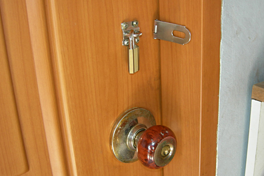 | 밖에서 잠그도록 바뀌어 있는 방 잠금장치. 생활인이 방 밖에 나오지 못하도록 하는 용도로 쓰인다. /사진 = 시설인권연대 | ||