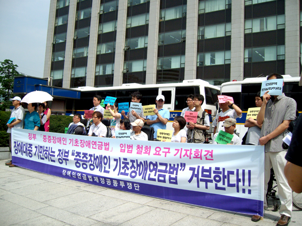 기재부의 예산안이 알려지자 장애인연금법제정공투단 측은 즉각 성명서를 내고 대정부 투쟁 돌입을 선언했다.
