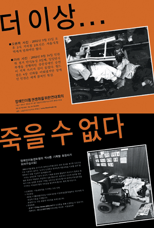 이들의 요구 사항은 단 한가지였다. “우리도 버스를 타고 싶다.” 일련의 과정 속에서 수많은 사람들이 다치고, 연행됐으며, 구속되거나 벌금을 부과 받았다. 항상 싸움으로 점철된 투쟁에서 그들은 몸을 사리지 않았다. 물러서지도 않았다. 그럼에도 불구하고 오히려 장애인 참여자의 수는 계속해 늘어만 갔다.