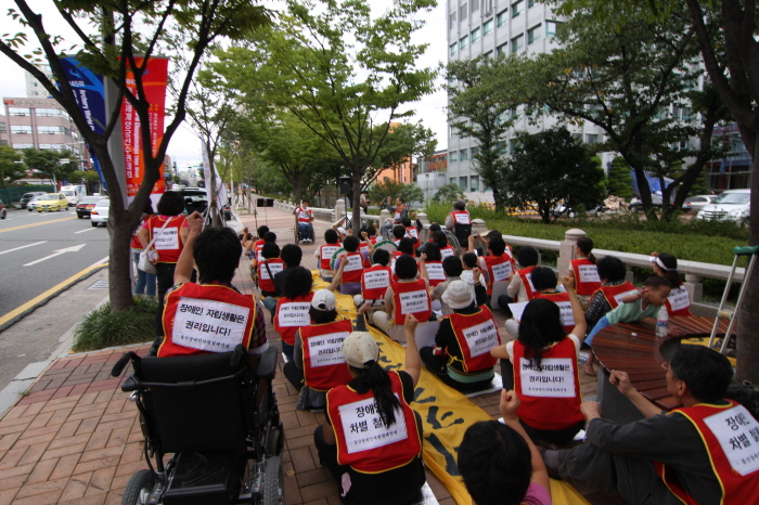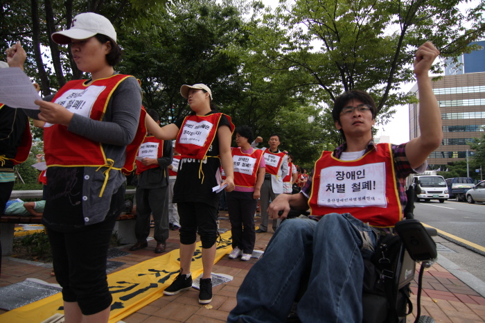 18개 장애인.시민사회단체로 구성된 울산장애인차별철폐연대는 31일 오전 10시30분 울산시청 남문 앞 인도에서 집회를 열어 울산시가 지난해 합의한 장애인복지정책의 주요 부분을 하나도 지키지 않았고 올해 4월 발표한 장차련의 요구에 대해서도 무시로 일관하고 있다며 울산시를 거세게 규탄하고 오전 11시30분부터 천막농성에 들어갔다.