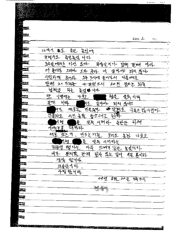 <“00형을 설득시켜 불게 하라. 대포를 만들었다 말해도 구속은 안 시킨다. 시킨 놈을 잡으려고 한다며 대포 쏘는 거, 만드는 걸 보지 못한 나보고 00을 설득시키라...”(유서 중)