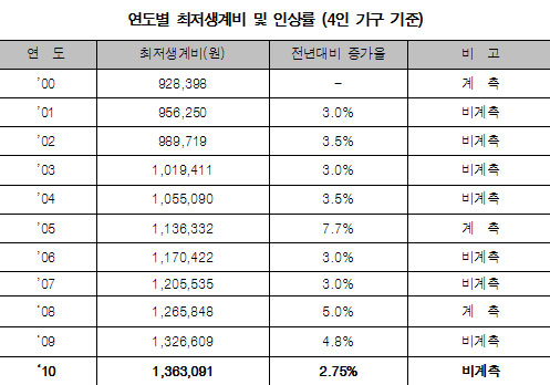 보건복지가족부가 25일 발표한 2010년 최저생계비가 턱없이 낮은 인상률로 논란이 되고 있다.